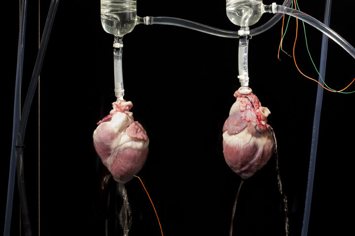 In some cases a strong bond forms and I feel compelled to ritualise the end of a life. For example, during the heart perfusion performance, I undertook with artist Peta Clancy and scientist Goradz Drevensek at Galerija Kapelica in Ljubljana, Slovenia, the two pig hearts we were perfusing continued to beat for 10 and 20 hours respectively.