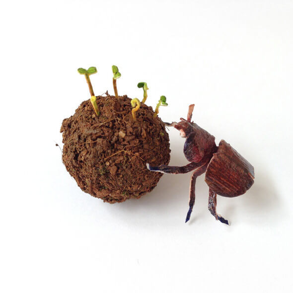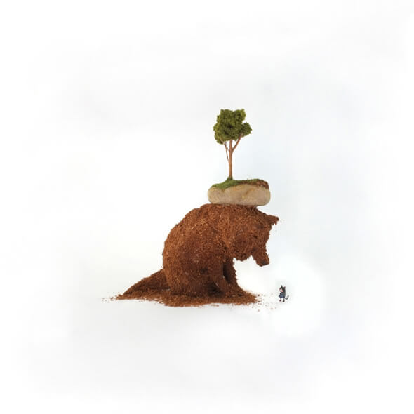 These figurative small sculptures and installations are made from objects and natural materials she finds everywhere. Moss, pebbles, clay, twigs, sugar or spoons are some of the things she collects and recycles to build a fascinating world that helps us understand that we can find beauty in unexpected places and things.