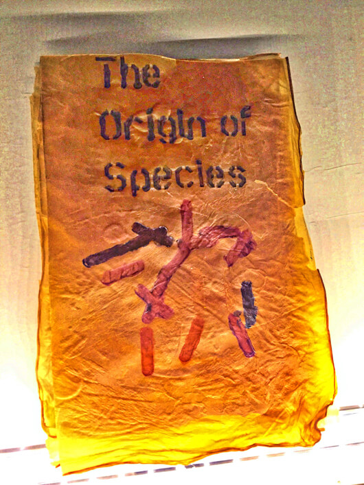 I chose Charles Darwin’s seminal work as the book as a playful take on our modern understanding of evolution and the fact that all life, as we know it today, evolved from bacteria and related organisms, and so that, in a sense, bacteria are the origin of all species.