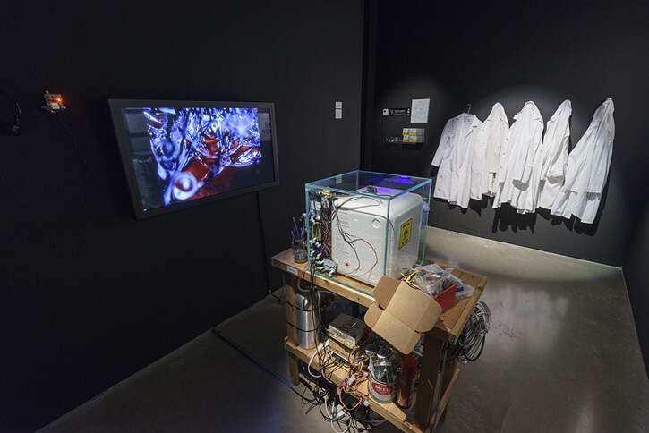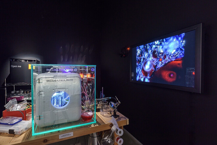 The conceptual framework behind Biomateria includes the work’s physical, political and cultural significance to raise awareness about political and ethical questions related to BioArt.
