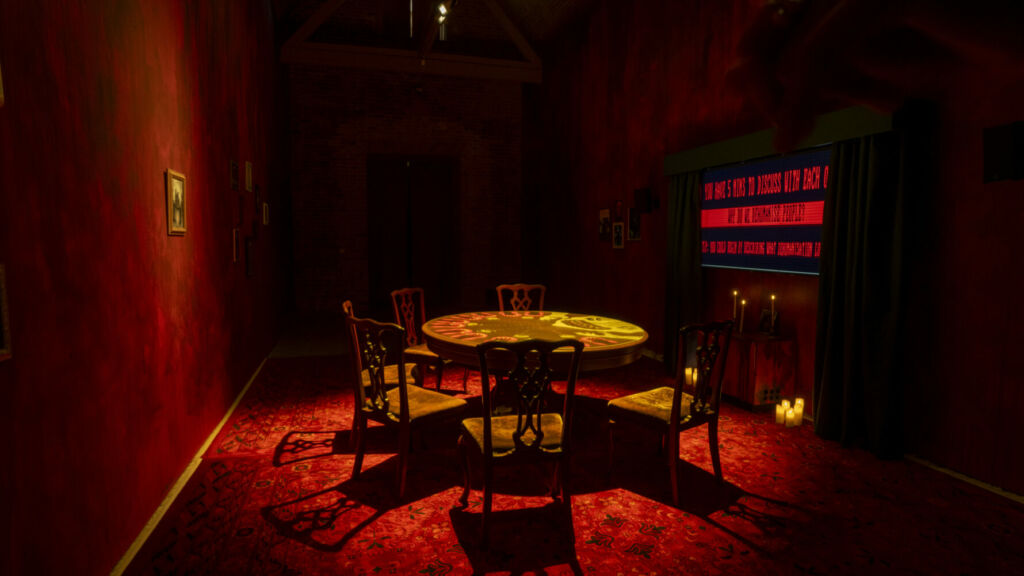 But often they’re less predictable and more concerning. THE DELUSION’s games are most thought-provoking as triggers of discussion about the lack of discussion triggered. When the exhibition betrays itself, when noisy voices and quickfire decisions dominate and silence surrenders, the games seem to corrupt in-person interactions with the superficiality and polarisation of online spaces: it becomes a toxic uber-echo chamber, flipping from empathetic New Age group counselling session to extremist rally, marginalising nuanced opinions.