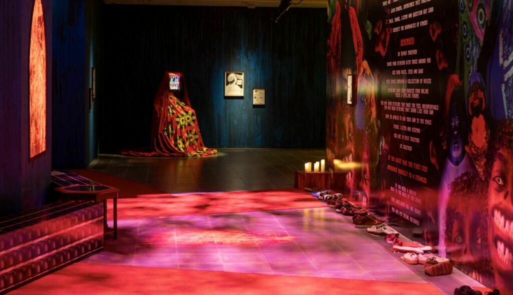 Finally, the game attempts another yoga festival moment: we’re asked to chant ‘MY VOICE HAS POWER’, to stamp, louder and louder, and to move around the space–which eventually resembles a madly marching army. It’s faintly culty, and I’m reassured to see that many people don’t follow the instructions. Yes, technology can troll us, but we can also resist. This isn’t easy art. Don’t expect Brathwaite-Shirley’s artworks to make you feel good about yourself or the state of humanity. They reveal how digital culture can either enhance or corrupt our humanity and interconnection–we have to be brave enough to choose.