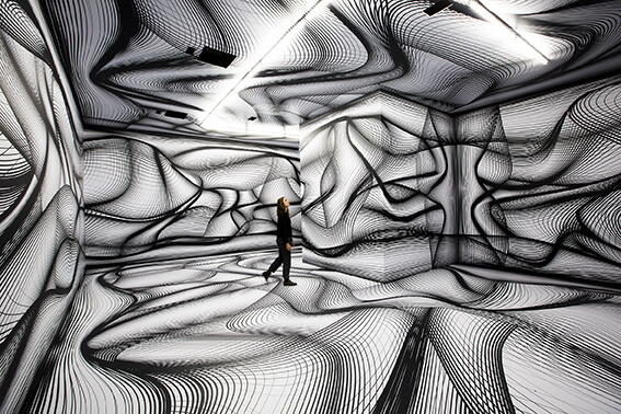It means a special setting and a very different format of exhibition compared to traditional paintings shows of the Grand Palais… but at the same time, they have managed to provide a great experience: since the opening of the show, I can see how happy is the audience to interact with immersive works from artists like Raquel Kogan or Miguel Chevalier. In a sense, it is a concretization of Marcel Duchamp’s motto: This is the viewer who is making the painting…