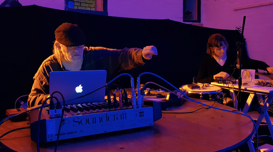 On the performance side, the persistent rain made us be less adventurous, wandering around the different stages, but we still managed to see a few great gigs. Starting our day with Jez Riley French and Pheobe Riley, who used tape, surface resonance via contact microphones and amplified objects from the fort alongside recent recordings of ensembles resonating buildings from Jez’s ‘salts’ project. A soft interplay of materiality and movement (or gesture). Probably one of the quietest gigs we’ve come to see; the delicacy and granular detail of the sound were otherworldly. It was a contrast to hear the much harsher sounds of Well Hung Game that exploit free jazz, improv and noise in the same room.