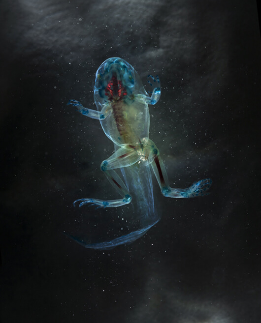 Three series have caught my attention: Collapse, Malamp and Season in Hell. With Collapse Ballengée denounces the ecological tragedy caused by the 2010 explosion of a British Petroleum exploration well in the Gulf of Mexico. The second one, Malamp: The Occurrence of Deformities in Amphibians – still ongoing – is indicative of his central thematic focus in his work: amphibians and, the third one, Season in Hell exposes the decline of the population of birds.