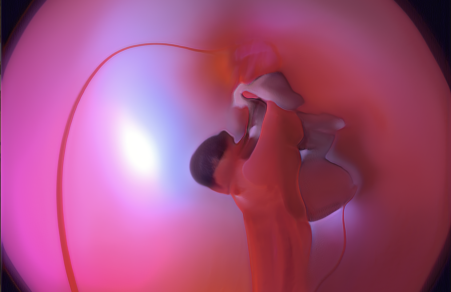 Many of my A.I. paintings are created with Style GAN 2 ADA. Style GAN is a novel generative adversarial network actually developed for reproducing data sets of imagery as accurately as possible. I like to use this tool in a very abstract or artistic way; it’s basically painting with code.