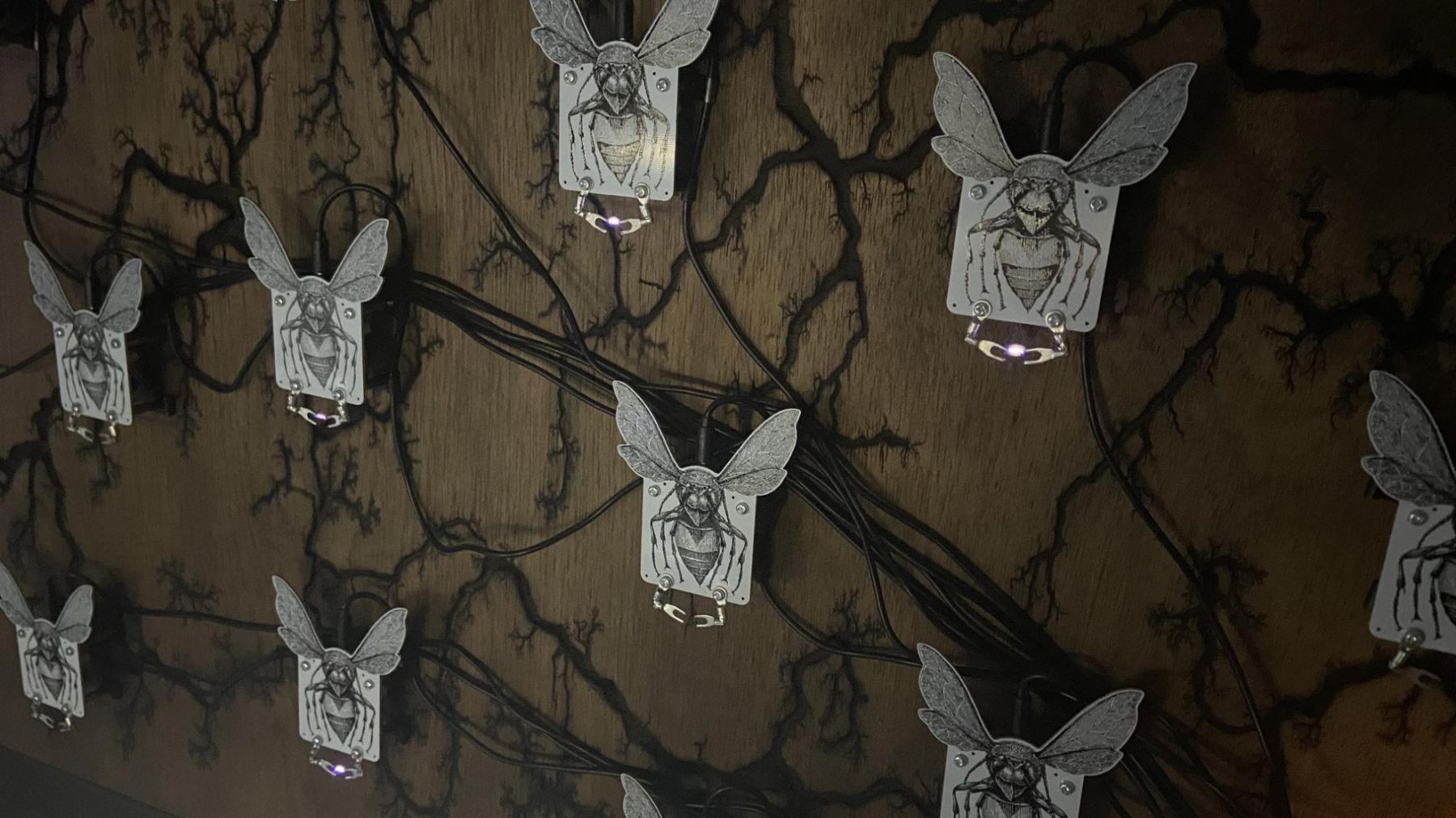 Individually, each symbol is carefully selected and conveys a special significance. Bees are used because of their questionable individuality as beings that exist at the exact point of division between animalistic free will and a mechanical system of automatic response to outside stimuli, as well as their position as a pressure point in environmental collapse.