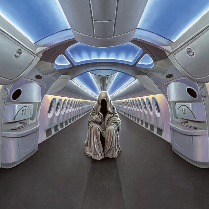 Adding the cloaked figure, I thought maybe that was the mirror guide or some sort of avatar for self-reckoning. I’m packing a lot of thought into an empty aeroplane photo, but that was my instinct.
