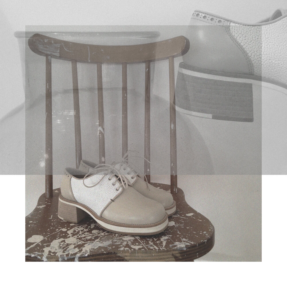 Domini finds inspiration in the deep ocean and plays with stacked wooden heels, leathers and colour to build a collection where greens, pinks and cotta beiges are mixed, reminding us of the reflections of the sea.