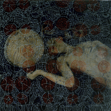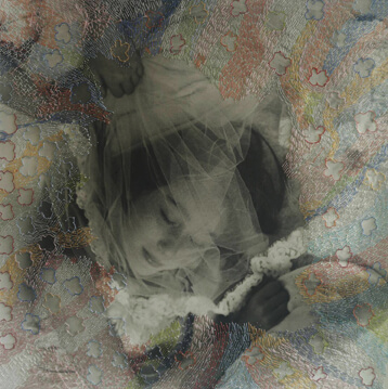 Femininity, identity and portraiture are the columns of her work. She loves taking photographs of meditative and sleeping anonymous women in different life cycles and then establishing a relationship with them by adding layers of colourful threads.