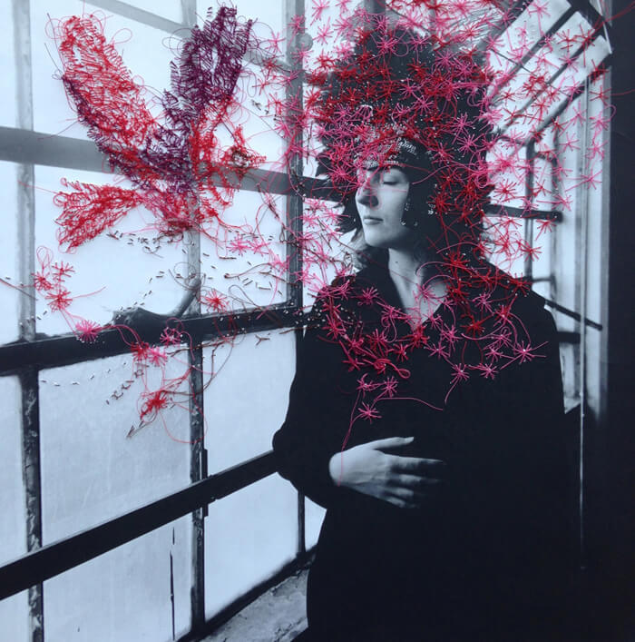 The creative universe of Melissa Zexter’s art is deeply fascinating. The talented Brooklyn-based artist shoots and prints all of her photographs. Zexter blends digital and analogical photography with embroidery —a traditional handmade activity considered to be typically feminine— in such a suggestive way that transforms the identity of the photograph.