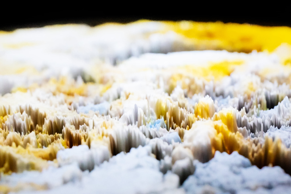 Un millesimo di millimetro speculates about a near-future where microplastics are so pervasive in the oceans that they become part of the evolution of marine microorganisms. The project was developed by Giovanni Muzio and Umanesimo Artificiale in collaboration with IRBIM (Institute for Biological Resources and Marine Biotechnologies), a department of CNR (the Italian National Research Center).