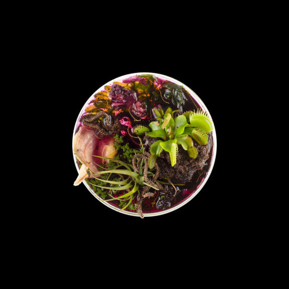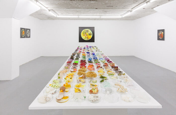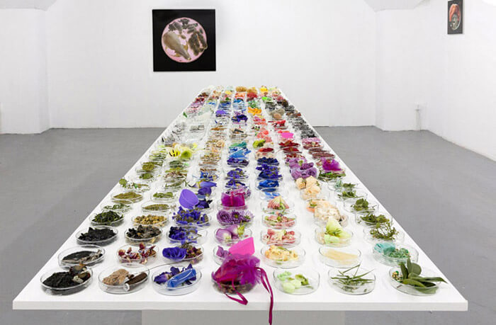 However, her latest projects, Petri’s Panoply and Vanitas in a Petri Dish, particularly challenge society’s current ideas of scientific practice. Anker appropriates the Petri Dish, a cylindrical plate often used in the laboratory for microbiology studies to culture cells and performs a series in which the boundaries between the binomial natural/artificial and the living systems/dead tissues are blurred.