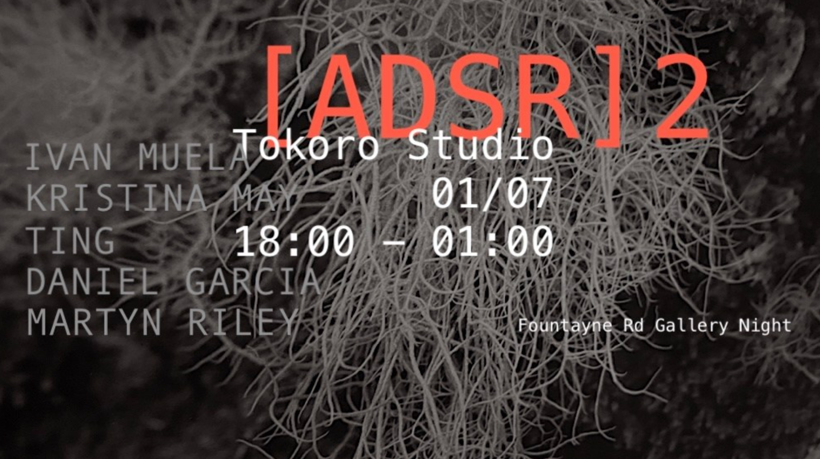 [ADSR] was initiated within Tokoro Studio to bring a different space/place for emerging artists to perform and for people to access their sonifications. On July 1, from 18:00 to 1:00 am, Tokoro Studio presents [ADSR]2, its second interaction with Daniel Garcia, Martyn Riley, Iván Muela, Kristina May and Ting.