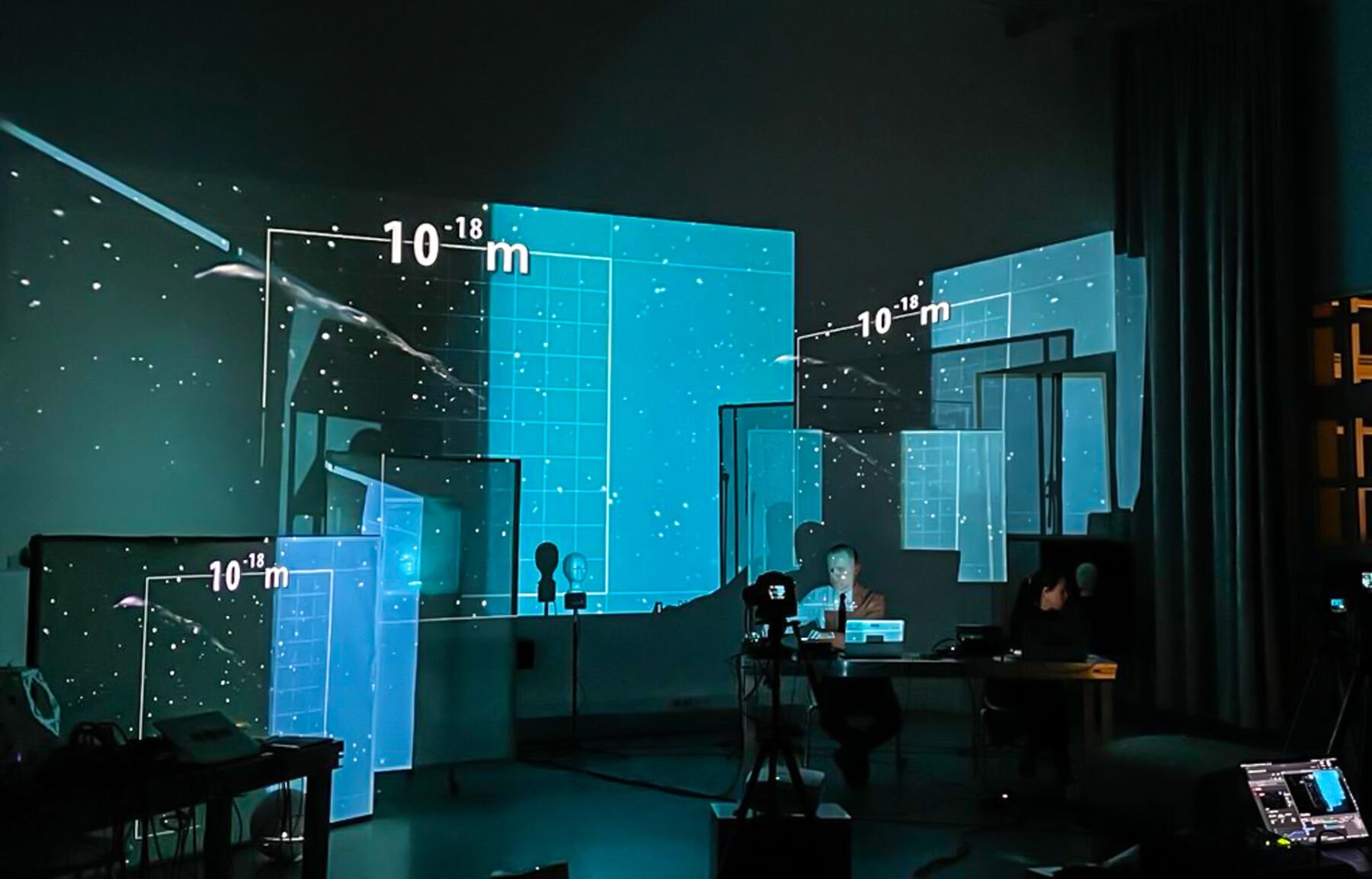 The framework of the work was hypertext, but the audio-visual used other topics such as artificial intelligence, simulations, digital surveillance, social media, climate change \and meditation. The major problems of our time are all interconnected, climate change, poverty, technology, economics… none of them can be understood in an isolated way. This is why we need to think in terms of relationships.