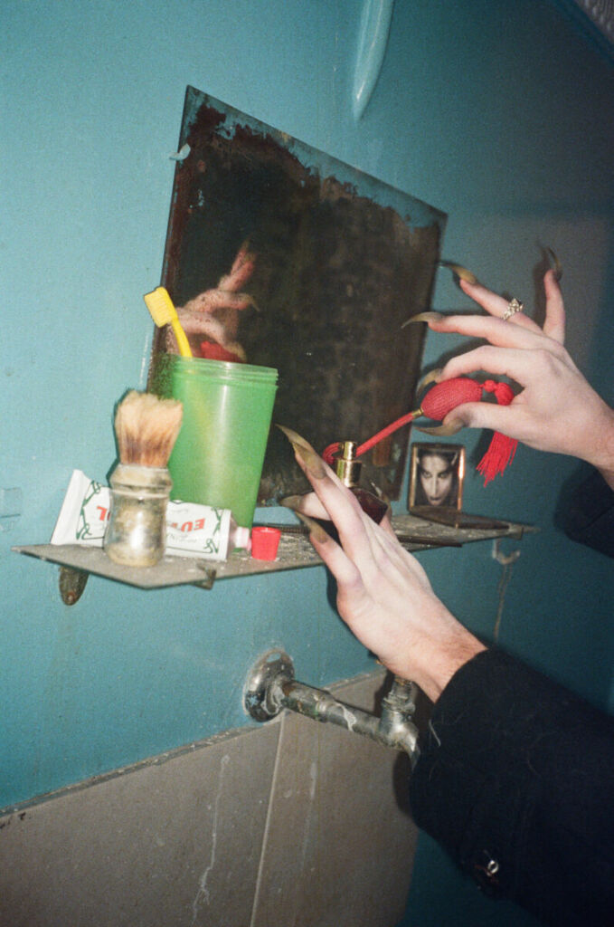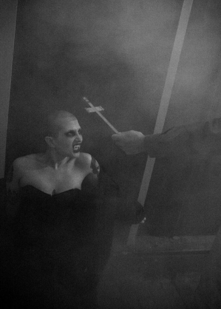 We should head off, and we gather our things to pay. Eddie and Nikki stand satisfied, and Adam looms over the three of us with a sincerity and presence I’m coming to understand is something he never washes away. His mien is controlled, but warm. It was crucial for me that in NECROPOP, the notion of the vampiric resemble something free, fun, sarcastic, nonchalant and mainly queer. Eddie and I bonded like two kids in school, outcasts running away from the mainstream crowd, pressured to conform to some prescribed ‘norm’. We found our safe space, nerding out over each other’s references and immersing ourselves in each other’s visual worlds.