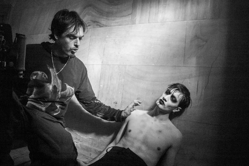 I’m meeting Slovakia-born and Athens-based film director Adam C.Keller and editor Nikki Powell in the lobby of the Astor cinema to discuss their latest project, in collaboration with Athenian EBM vampire musician Eddie Dark. Strikingly tall, in leather motorcycle boots, grungy hair, bootcut denim and camo jeans, a hypnotic Slavic intonation in his voice— C.Keller cultivates the very image of a vampire-stroke film director. We’ll screen the film and take a coffee somewhere nearby, he smiles, leaning into his hand, and we wait for Eddie to arrive.
