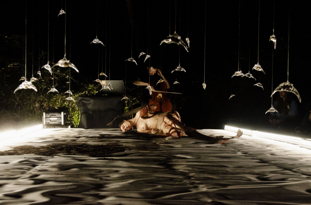 In my interview with Pevere, she credits the term untaming to a dialogue she had with artist, inventor, and theorist Marco Donnarumma. Pevere dove deeper in her response by sharing that the naming of the series both refers to death while simultaneously refuting it as a fixed state. She explained: untaming suggests the reverse of taming, and the refusal to ‘stay put’ or comply with given frames or expectations. Its meaning has two layers. On the one hand, it’s an aesthetic choice: often my artworks hang from the ceiling rather than staying on a pedestal; are projected slanted on a wall rather than on a monitor; or bleed out from the frontal performance format. On the other hand, it’s a philosophical position. Labels and classifications are important tools for understanding the world, yet they may risk becoming THE way one understands the world. Physical and cultural frames are a construct, not a given.