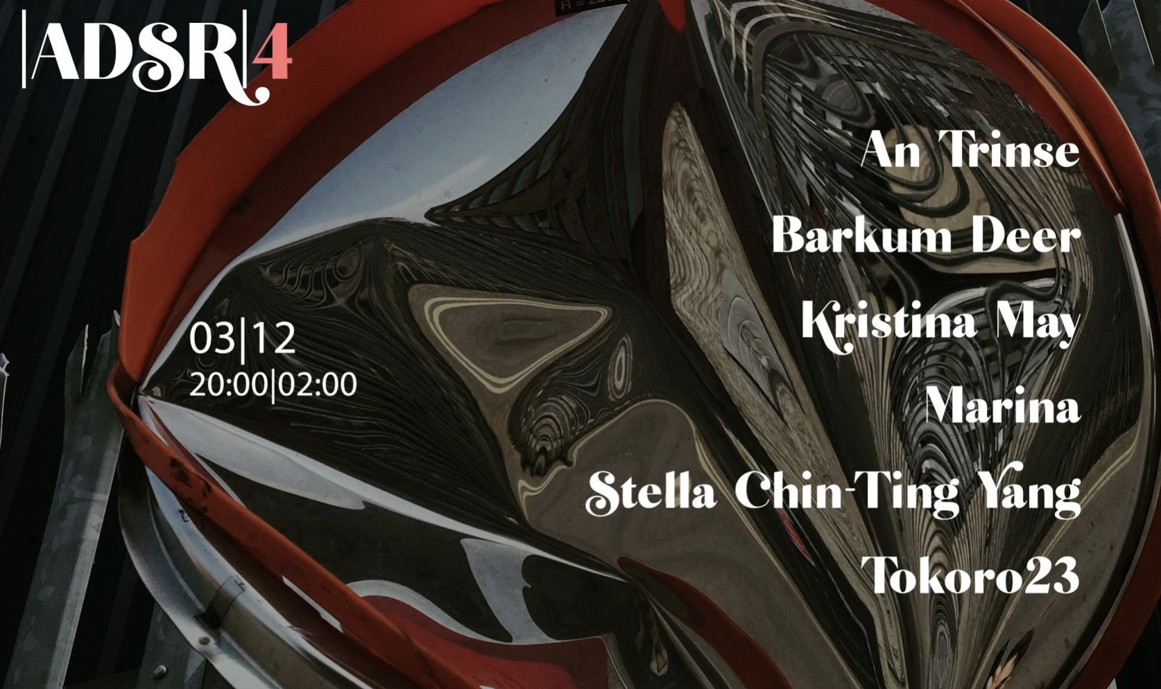 On Saturday, 3rd December will see the 4th iteration of the series. |ADSR|4 will include Barkum Deer, who shared a brilliant mixtape with us a few months ago. Their live show will bring dense sonic landscapes to play their debut live performance after the recent release of their self-titled album on First Light Records. Experimental Northern Irish artist An Trinse (Stephen McLaughlin), with a fresh video premiering at FACT just out, he’ll present a new twist on his recent stunning gig at Iklectik. Stella Chin-Ting Yang, debuting, will perform a spoken piece with Tokoro23 (the sound project of Martyn Riley himself) with his tapes, looped vocals and rhythmic drones. Resident DJ selector Kristina May will perform live this time, with experimental excursions into obscure beats, while Marina, an experimental music selector performing for London-based collectives such as Chronic Illness and Judgement Hall, will be on DJ duties.