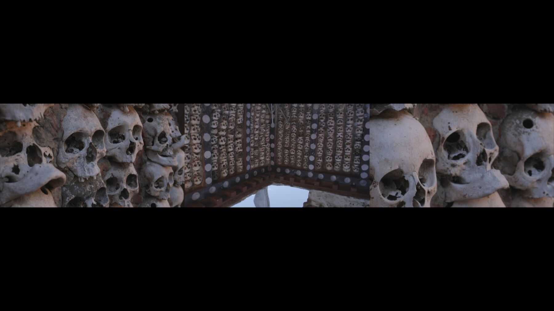 The camera enters a hostile mineral environment, considered by Tibetans as the landscape of the dead, and indeed Tianzhuo’s video shows no people throughout. Whirling praying wheels are moved by the wind blows, the sound of wind instruments echoes in empty spaces accompanied by no musicians, and voided temple interiors hide statutes under wraps, obscured by shadows.