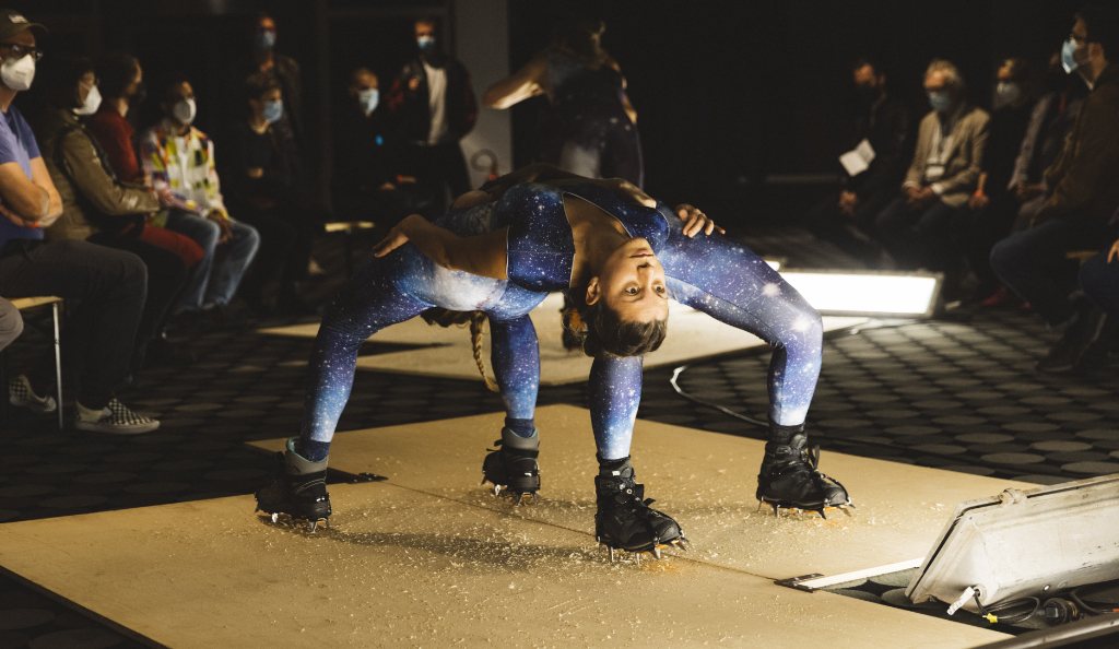 Only the entry of the third performer, who at first sits down quietly among the audience, creates a moment of uncertainty. Nevertheless, observing their careful interplay remains a touching, almost bodily experience, reacting to each other through sung fragments and cautious movement. Much later, the composition reveals itself as a highly deconstructed version of Beethoven’s Ode to Joy.