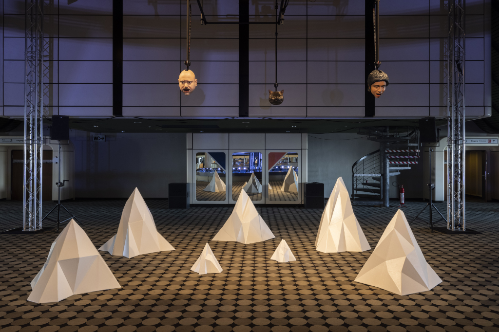 One day later, a stream of excitement descends on me as I stand in front of the complex that looks more like an alien spaceship or SciFi submarine – ready to take off or submerge any second. The spacious entrance hall unfolds, allowing an in-depth view of the giant iron belly. Maximalism seems to be the credo of the project, for which a large curatorial team has invited several big-name artists to revive the former convention centre. Navigating through the extensive and unhandy exhibition leaflet proofs was pointless after the first attempt, so I decide to indulge in the experience rather than viewing specific works.