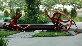 Text by Mara G. Haseltine In 2006 I installed one of my largest sculptures to date, 12 meters in diameter, SARS Inhibited. The Sculpture is situated in a reflecting pool within the central plaza of Singapore’s Biotech Mecca ‘Biopolis’. The Biopolis campus was designed by the renowned architect Zaha Hadid. SARS Inhibited celebrates and illustrates … Continue reading In conversation with Rolf Hilgenfeld, a sculpture for the age of coronavirus: dancing on the line between art & scientific discovery