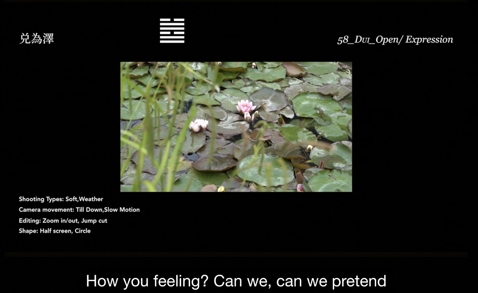 Young people in China are much more interested in Tarot and tend to see the I Ching as just an old book, she explains. Despite this, a kind of reverence seems to remain and is notably felt in Akira’s mother’s reaction to her daughter’s project Film of Changes, (or How I Free Myself with Rules), in which she can be heard and seen making fun of Akira for using the ancient divination technique for something as trivial as art-making. Overall, British people are much more interested in the I Ching than Chinese people. Akira tells me she learnt to use it shortly after moving back to London, and it was also then that she was introduced to the practice of John Cage.