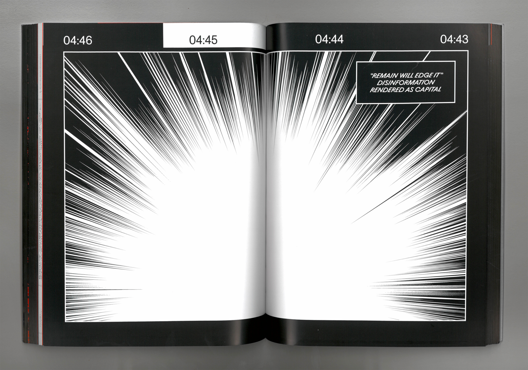 Through the slower format of the book, a series of textual and visual contributions reflect on trading strategies old and new, hedge fund aesthetics, filter bubbles and post-Brexit politics, leaning back towards the night’s events and forward into the subsequent years.