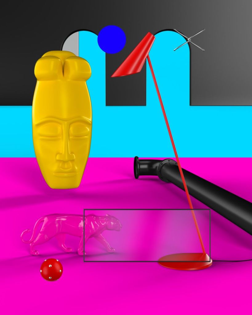 As he told in an interview with fellow artist Pilar Zeta at Foundation NFT store and community, his visual process is very detailed and meticulous, yet opening space for intuition: I usually start with one main object, archetype, or symbol—and from there I start to research available 3D objects and symbols to accompany that main idea. After this, he draws on an iPad and creates the 2D sketches, which will function as geometrical guidelines for the 3D image, which then gets animated, moved around and edited, all this in relationship with the conceptual, symbolic and aesthetic guidelines defined earlier.