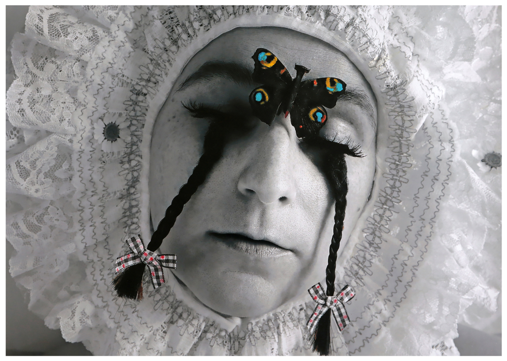 The reality of this was made overwhelmingly apparent for many chronically ill and disabled individuals, especially as the urgency and embeddedness of everyday practices in relation to remote presence technologies rose and waned following able-bodied experiences, needs, and access to physical and public spaces.  However, for Corinne, the COVID-19 Lockdown and its initially normalising facilitation of gathering and working through remote presence technologies served as the beginning of an inspiring shift in their practice. As they explained, Prior to the pandemic, I tried for years to have a career as an artist. I tried so hard and for so long, but my barriers of lifelong mental illness and struggling to leave home, and then bed, made an artistic career or any career impossible for me… I view my bed as my artistic studio space, and from this 2 by 1.5 metre space, I create mainly photographic self-portraits and, more recently, performance art.