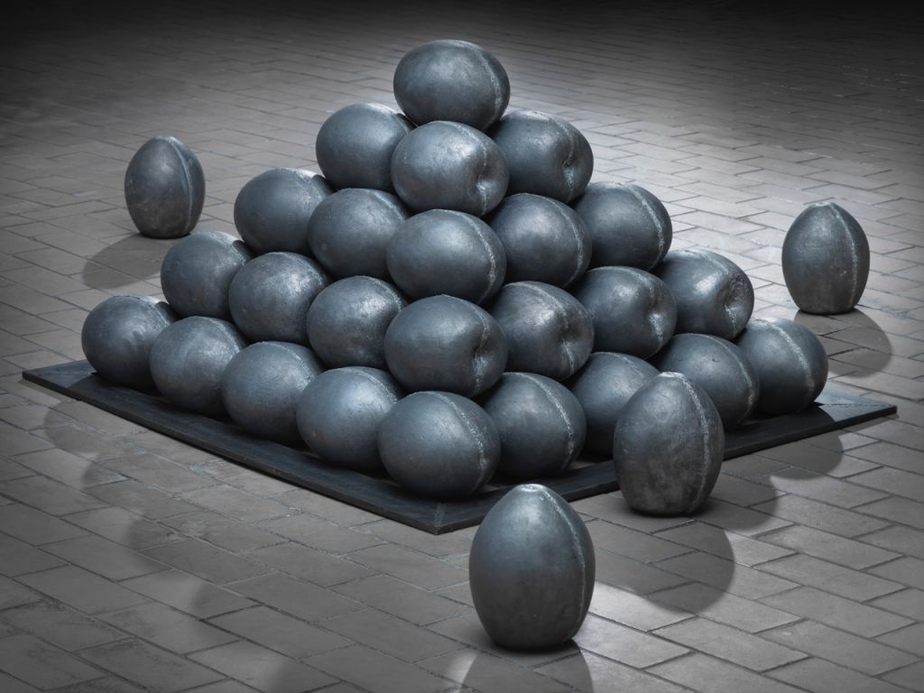 In Pacific Fiction – Study for Monument by Julian Charrière, radioactive elements are “trapped” within the real coconuts. A pile of coconuts enclosed in the lead contains radiation and preserves the consequences of nuclear tests run by the United States government on the Marshall Islands. Together with the work Eneman III and Enyu I – almost idyllic photographs with radioactive exposure showing the abandoned and to this day contaminated island – the artist proves that the invisible elements such as toxins, pollutants, and radiation will be the biggest monument left by humanity, lasting millions of years deep beneath the earth, inside of living organisms, and mutating from one form to another.
