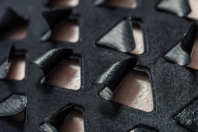 Steiner examines a more futuristic functionality as an engineer for bioLogic, a sub-project of MIT Media Lab’s Radical Atoms Project, which aims to create versatile, reconfigurable materials for use in daily life. bioLogic is a material composed of the bacterium Bacillus Subtilis, which is sensitive to changes in humidity and expands or contracts accordingly. Steiner’s team has partnered with New Balance to use this material in athletic wear, creating flaps of clothing that can curl away from the body to allow for additional ventilation during periods of intense activity. This “second skin” is a fascinating piece of biological engineering, but the promotional video for it – cinematic and clever – could stand alone as its own form of art.