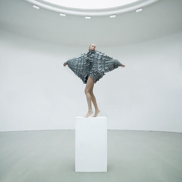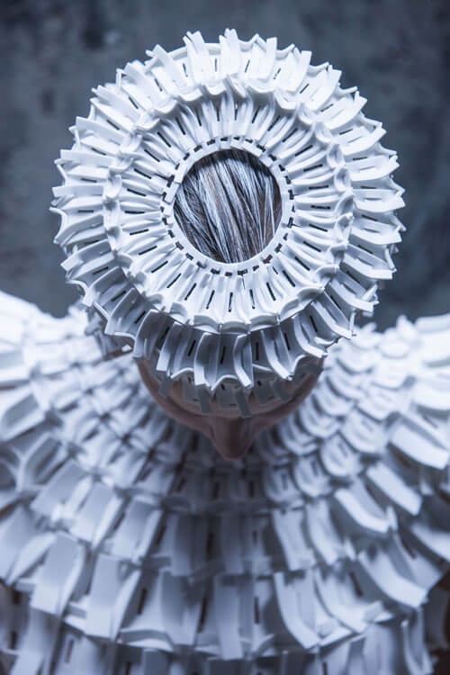 Inspired by the cathedral of St. Jacob in Šibenik, OBJECT 12-1/13-5 is a collection of garments developed without sewing and made from a unique kind of interlocked segments.