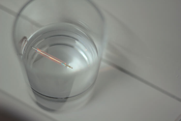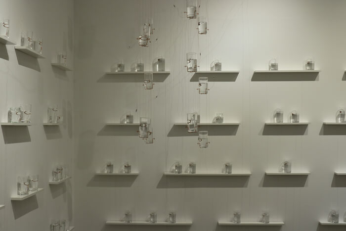The reason why CHIJIKINKUTSU and CHOZUMAKI seem so minimal is [because] I’m presenting materials such as water, glass tumblers, sewing needles, etc., and [phenomena such] as geomagnetism and vortexes, and sounds such as glasses [clinking] and [the movement of] water, just [the way they are all found in nature]. I don’t follow the surrealistic approach, like the [presentation of] impossibles, nor the cinematic method of montages; I didn’t express any narratives there.
