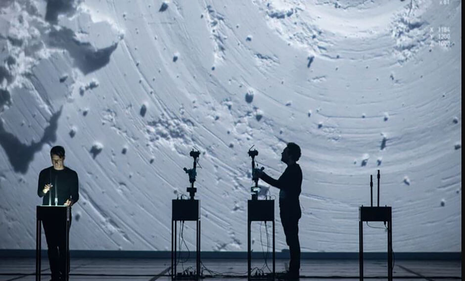 ASHES is a new visual and sound performance originating from the first collaboration between Montreal artist Martin Messier and French artist Yro (Élie Blanchard). There was a crucial catalytic event at the work’s origin in 2017: the start of a fire in the studio’s storage space destroyed the materials that were supposed to constitute the project’s base. Facing this situation, the artists are presented with an intuition: put the residues of the fire at the heart of their creation.