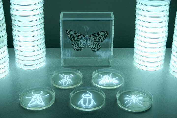 This unique solo will feature a survey of Cole’s bioluminescent art from 2005 to 2017, featuring photographs of human figures illuminated by a glowing blue light created by bioluminescent bacteria. In addition to the photos, visitors can also see a time-lapse video piece featuring the bacteria growing and dying, accompanied by a musical score based on the protein sequences in the bacteria — all of which is meant to invoke reflections on the issue of mortality.