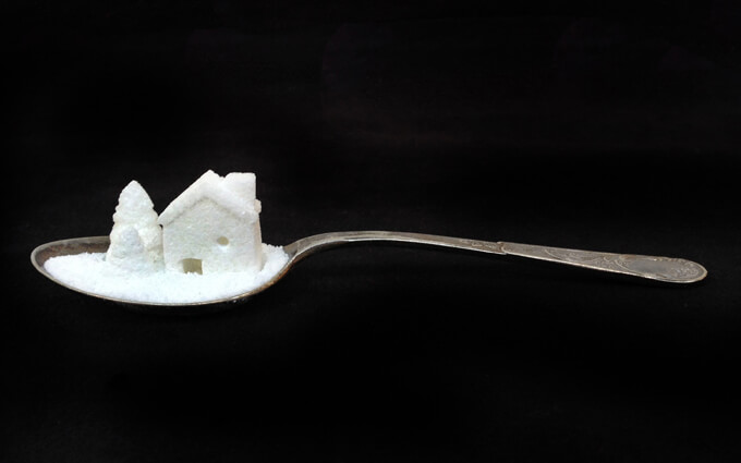 These figurative small sculptures and installations are made from objects and natural materials she finds everywhere. Moss, pebbles, clay, twigs, sugar or spoons are some of the things she collects and recycles to build a fascinating world that helps us understand that we can find beauty in unexpected places and things.