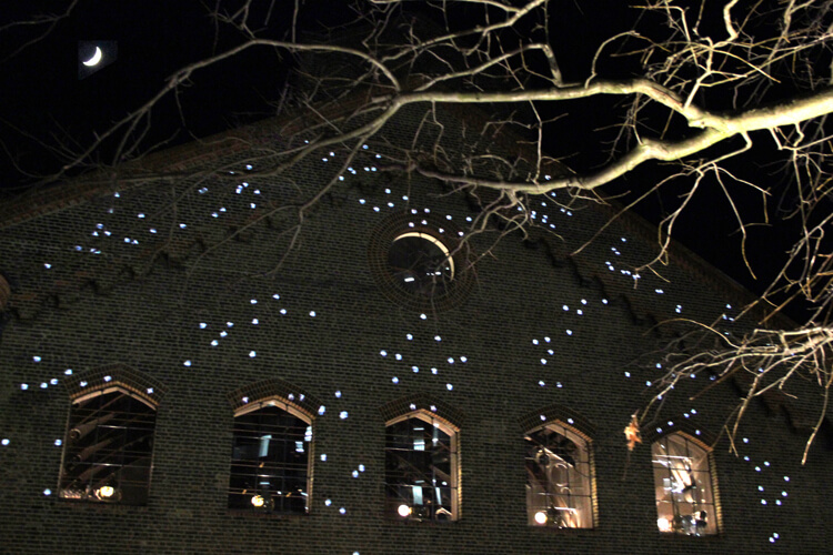 When we first started working with Johansson’s dots, we wanted them to be interactive, using a Kinect with software that created live dot figures from spectators’ moving bodies. But the arm-waving that the Kinect installation inevitably invited was somehow just distracting from a more important process that was going on in the visual cortex of the spectator: drawing human bodies out of an almost abstract play of moving dots. In a way, we’ve discovered – and we’re not the only ones – that art is always interactive and always has been.