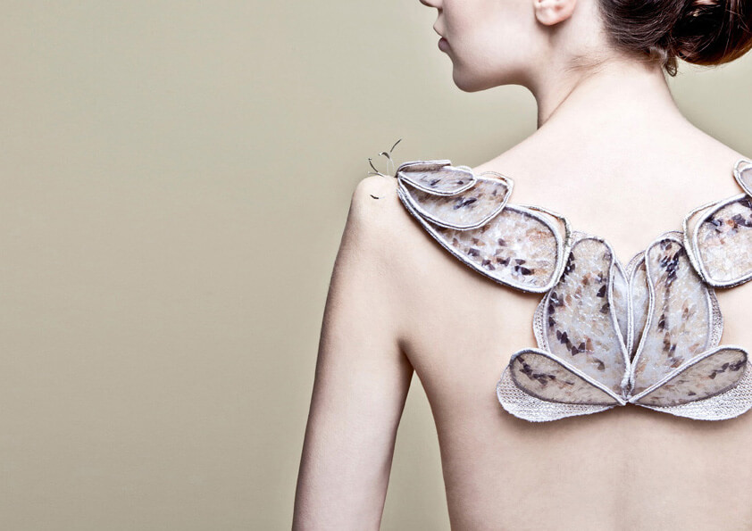 Amy Congdon continues her research focused on the role of textile design in the creation of biological products. Under this premise, she developed Biological Atelier —a critical design project— in which Congdon reflects on the use of emerging living materials grown from cells to create future materials.