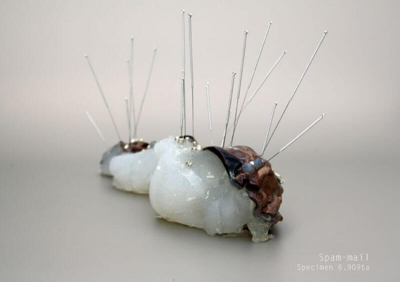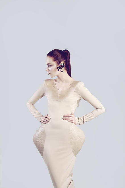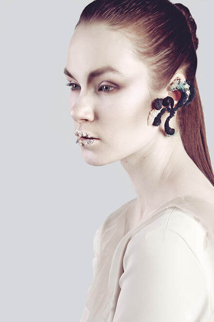 With Data Hungry Skin —a project developed in 2010— she explores, in a not-too-distant future scenario, how diverse types of data can have different nutritional values. The human body absorbs these ‘data meals’ through the membranes of the cells.