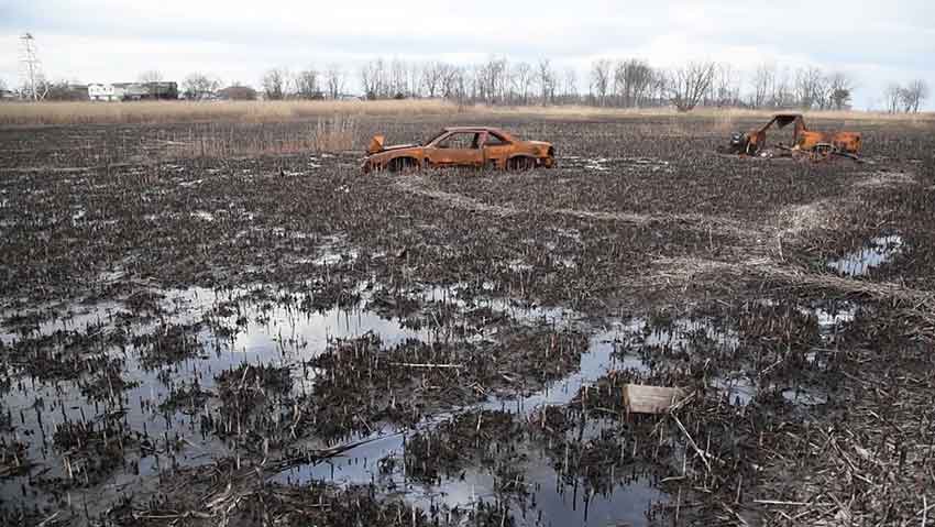 The piece was inspired by my photographs of Hurricane Sandy. In the aftermath of the storm, I began looking at all of the recovery efforts around New York, including the process of managed retreat. Of everything I saw, this process was the most interesting response to the storm. But very few people had heard of it or knew that their neighbours were tearing down their homes because of climate change. As I watched these communities gradually transform into wetlands, I was inspired to start filming.