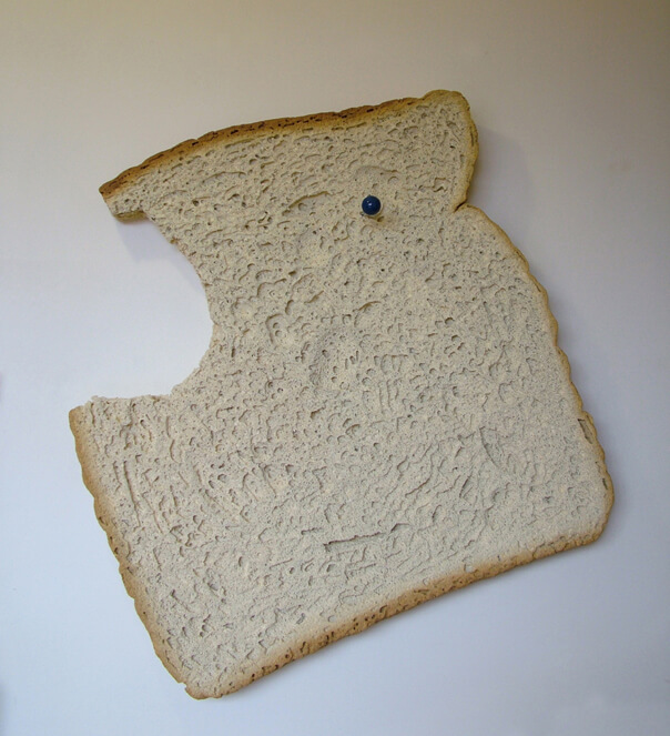 Two series caught my attention: Zoom and Macro. While Zoom is a set of acrylic and pencil monochromatic and hyper-realistic drawings of reality bites as light bulbs, orange slices and pencils, Macro is a series of atemporal sculptures made of polychromed polyurethane, aluminium, felt and epoxy which helps create a new sense of our physical world.