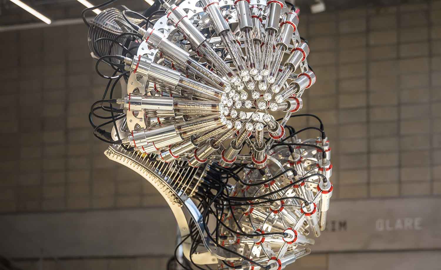 Korean artist Yunchul Kim, a well-known artist for CLOT readers, is presenting two works: Triaxial Pillars II (2017-2020) and Argos (2018-2020). The works I now make are time-based, so dealing with these events is not actually too different from when I did music. Even though I do not actually create sounds, the kinetic movements through various devices of my works can be seen as a real-time composition. When the fluid flows within the devices, various noises are heard, which I think can be perceived as having a musical experience. I still work with music, and I anticipate that one day there will be a point when my sound ideas and visual works meet. He told CLOT when asked about his creative process exploring the properties of matter, the potential of fluid dynamics and natural processes.