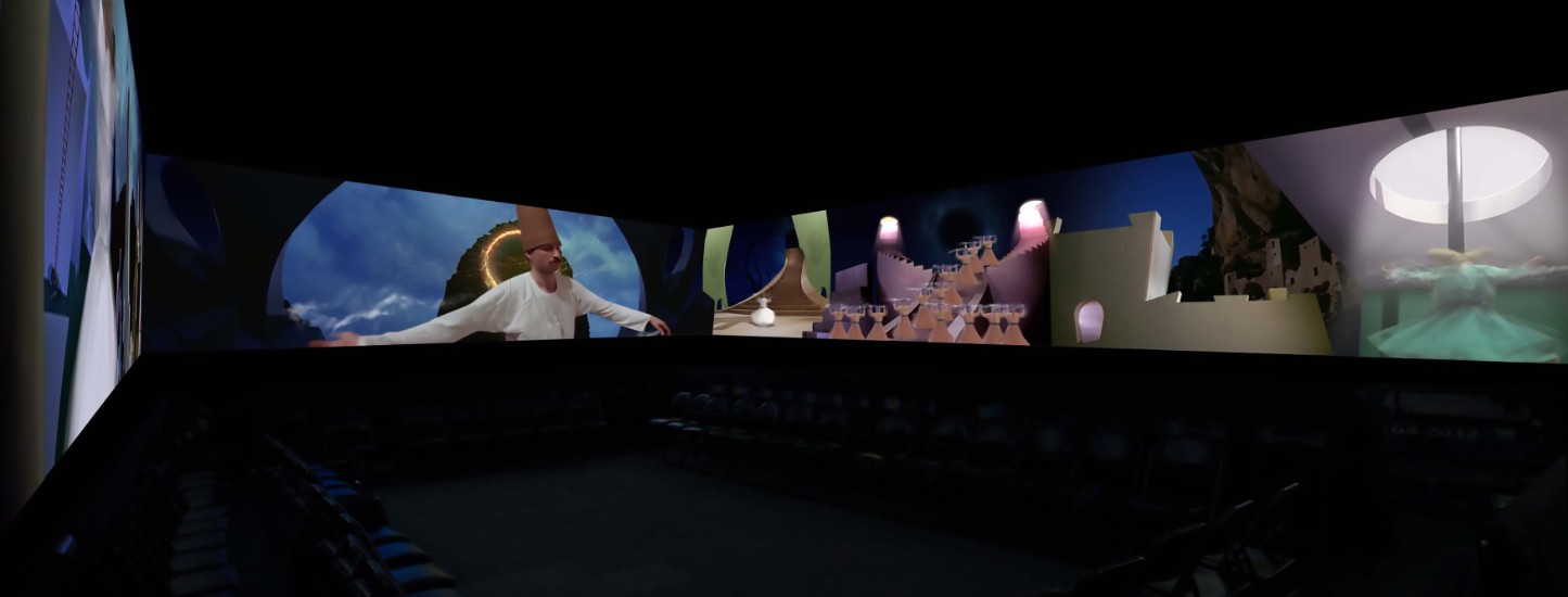 Commissioned by Naut Humon, the founder of the immersive theatre project Recombinant Music Labs CineChamber, GONE, GONE BEYOND is a ten-screen / six-speaker piece with seamless wrap-around projection spatialised soundscape where the audience sits inside. It uses edited collages sewn together in a giant patchwork. Pull on a thread and watch whole new narratives expand and unravel all at once on a 360º palette. The project has been a work in progress since 2017 and is showing in feature-length format for the first time in 2021.