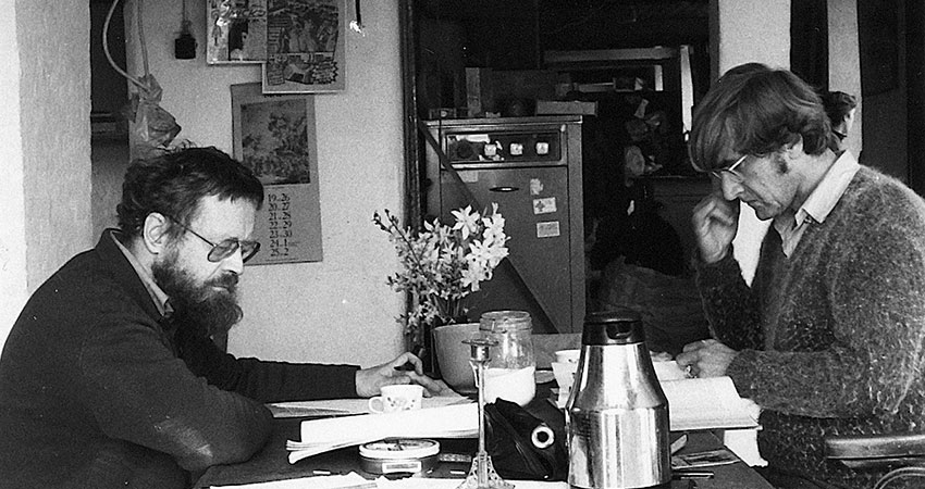 Henning Christiansen and German radio producer Helmut Kopetzky in Christiansen’s house on the island of Møn