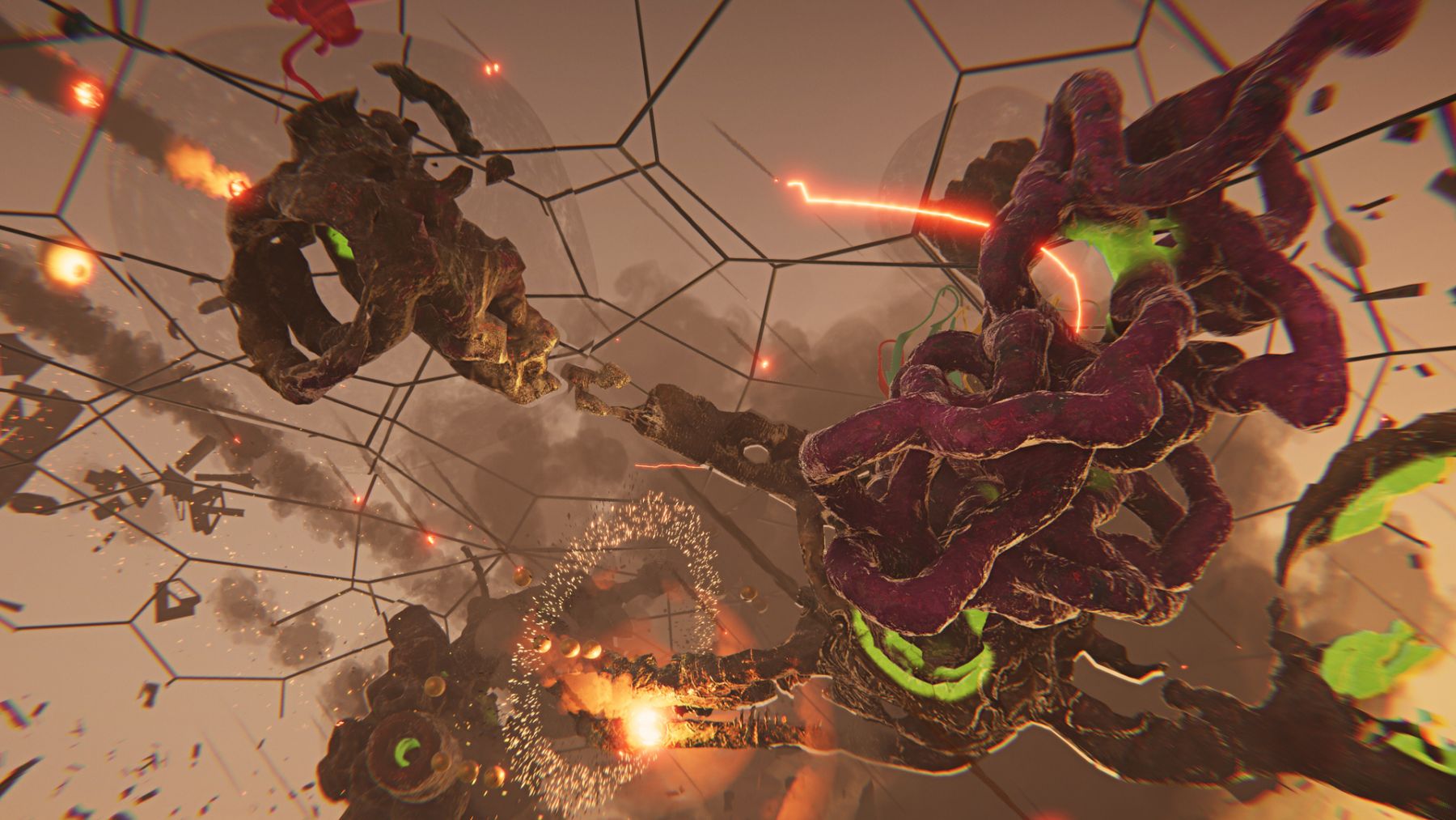 Triantafyllidis shares that the planet’s terrain was sculpted in Virtual Reality, and he tried to form it into something delicate and fragile, even unstable. It also perhaps looks like a rhizome or a network since it is a series of points of interest connected with bridge-like landmasses. Then they decided to populate this planet with various life forms that range from microscopic and fungal to some more recognizable objects of unknown origins.
