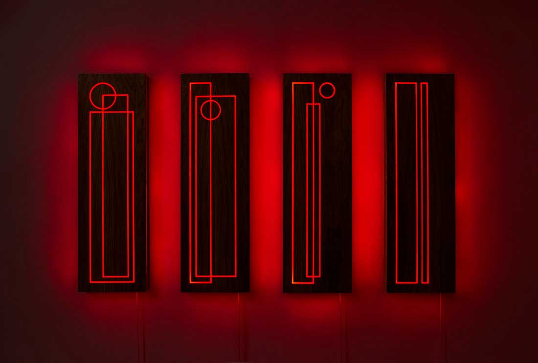 The inspiration behind this piece is Aphra Shemza’s grandfather Anwar Jalal Shemza, who, in his works, explored the relationship between basic geometrical shapes, such as the circle and the square (so present in Aphra Shemza’s universe).