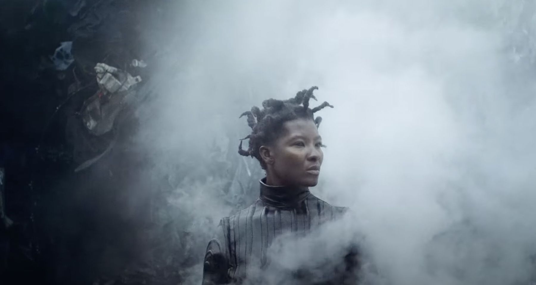 They first discussed with Ala Eddine the vibes included in the album, from collapsing future perspectives (ecological, political, social, economical…) to post-whatever mood and intimate or collective struggles in a not-so-far now. The «Black Elephant» theory, they continue, is a cross between a black swan — an unexpected event with enormous ramifications and perspectives— and the elephant in the room — a looming disaster that is visible to everyone, yet no one wants to address. And then Ala Eddine found his own and so specific way to bring life to his perspective; the characters and spaces in the film appear very much as symbols, almost mythological ones.