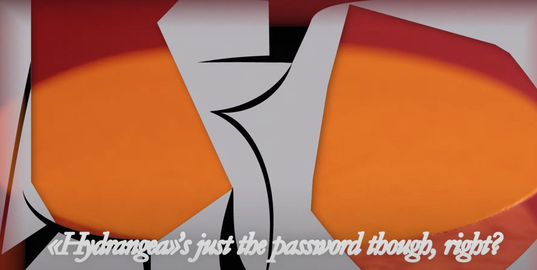 The shared utterly rich creative universe comes across with the intricate knowledge tapestries both artists manage to craft together. For example, the album title Hydrangea reflects the engagement with the hydrangea flower/plant both direct and meta: An example of direct engagement is that a lot of text within the work gravitates to the analysis of soil conditions that turn hydrangeas either pink or blue. An example of the meta engagement is that in the third track, a character directly engages with the question of how the word “Hydrangea” relates to the work Hydrangea but is interrupted. Being silenced or placated when you’re uncovering a potential metaplot is also an important theme of Hydrangea.